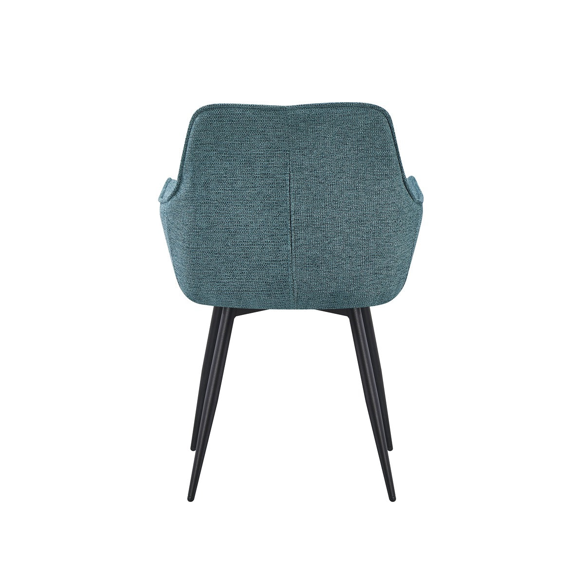 The Francis Chair combines style and functionality, designed to elevate any room's aesthetic. Upholstered in a premium teal-colored textured fabric, this chair offers a plush and supportive seating experience, thanks to its padded cushion and curved backrest. Its minimalist design is complemented by sturdy, black powder-coated metal legs, ensuring durability and stability. Ideal for dining areas, home offices, or lounge spaces, the Francis Chair seamlessly blends modern sophistication with everyday comfort. Whether used as a standalone statement piece or part of a set, it is sure to enhance your home's interior charm.